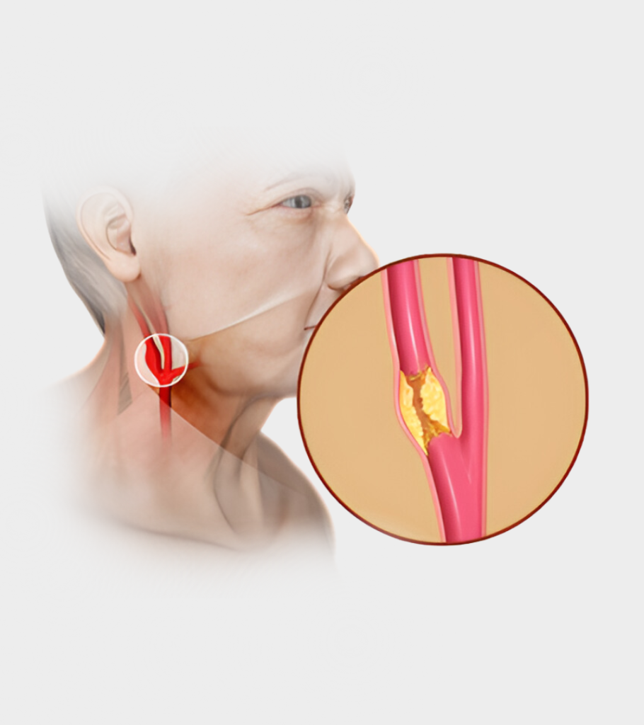 A estenose de carótidas ocorre quando uma ou ambas as artérias carótidas – localizadas no pescoço, ao lado da traqueia – desenvolvem depósitos de placas de aterosclerose. Essas placas de gordura, colesterol e cálcio aderem às paredes das artérias, causando um estreitamento que dificulta o fluxo sanguíneo. Em casos graves, a estenose pode impedir quase totalmente o fluxo de sangue e levar à formação de coágulos, elevando o risco de um AVC.